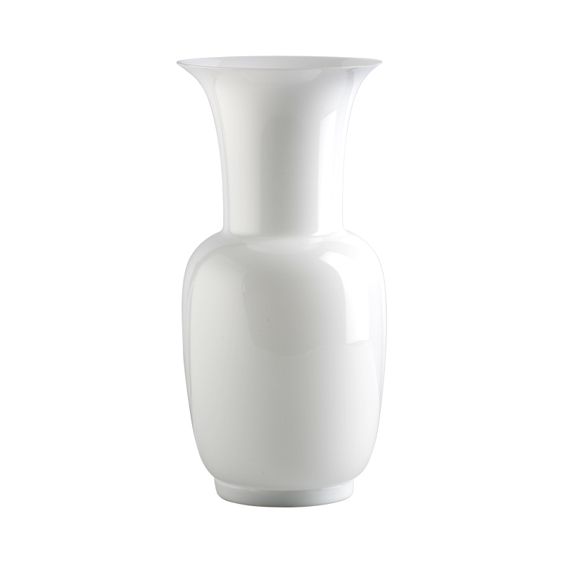 Ottenuto dalla sovrapposizione del lattimo con altri vetri, il vetro opalino è soffiato e lavorato a mano.